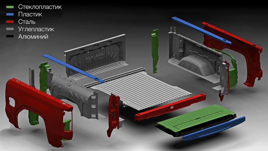 Конструкция кузова CarbonPro™ обеспечивает лучший в своем классе объём груза, увеличивая и без того лидирующий в своем классе объём стального кузова у Sierra на 1 кубический фут.