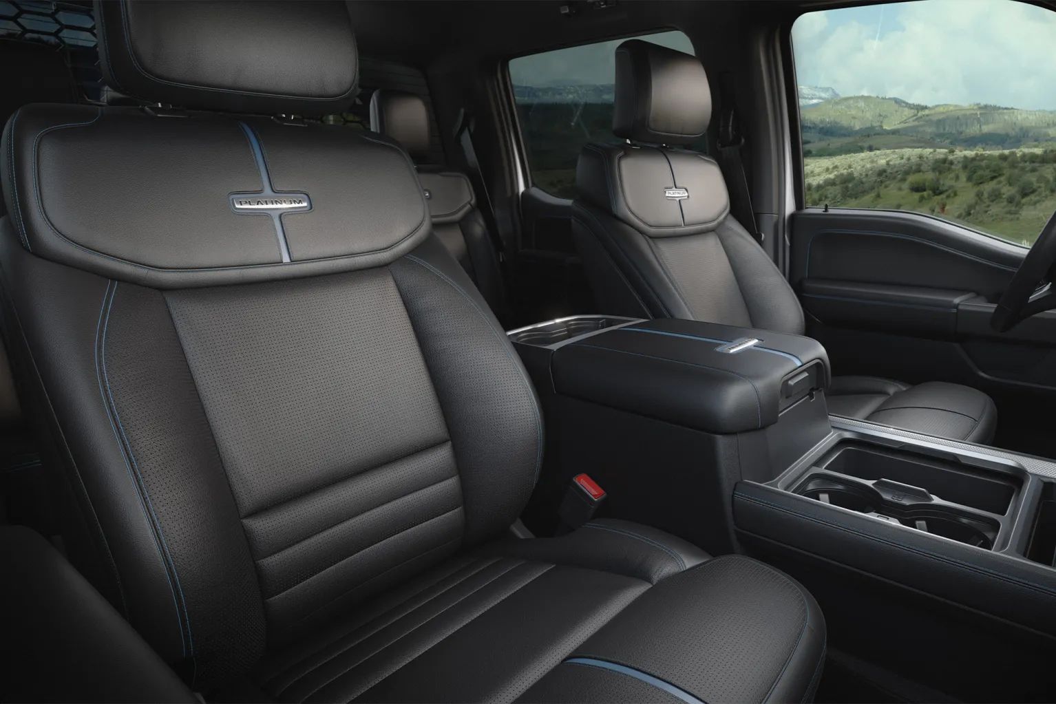 Теперь шасси F-350, F-450 и F-550 можно заказать с кожаной обивкой сидений и множеством других улучшений. В комплектации Platinum установлены информационно-развлекательная система Ford SYNC4 с 12-дюймовым экраном и аудиосистема B&O Unleashed с 14 динамиками.